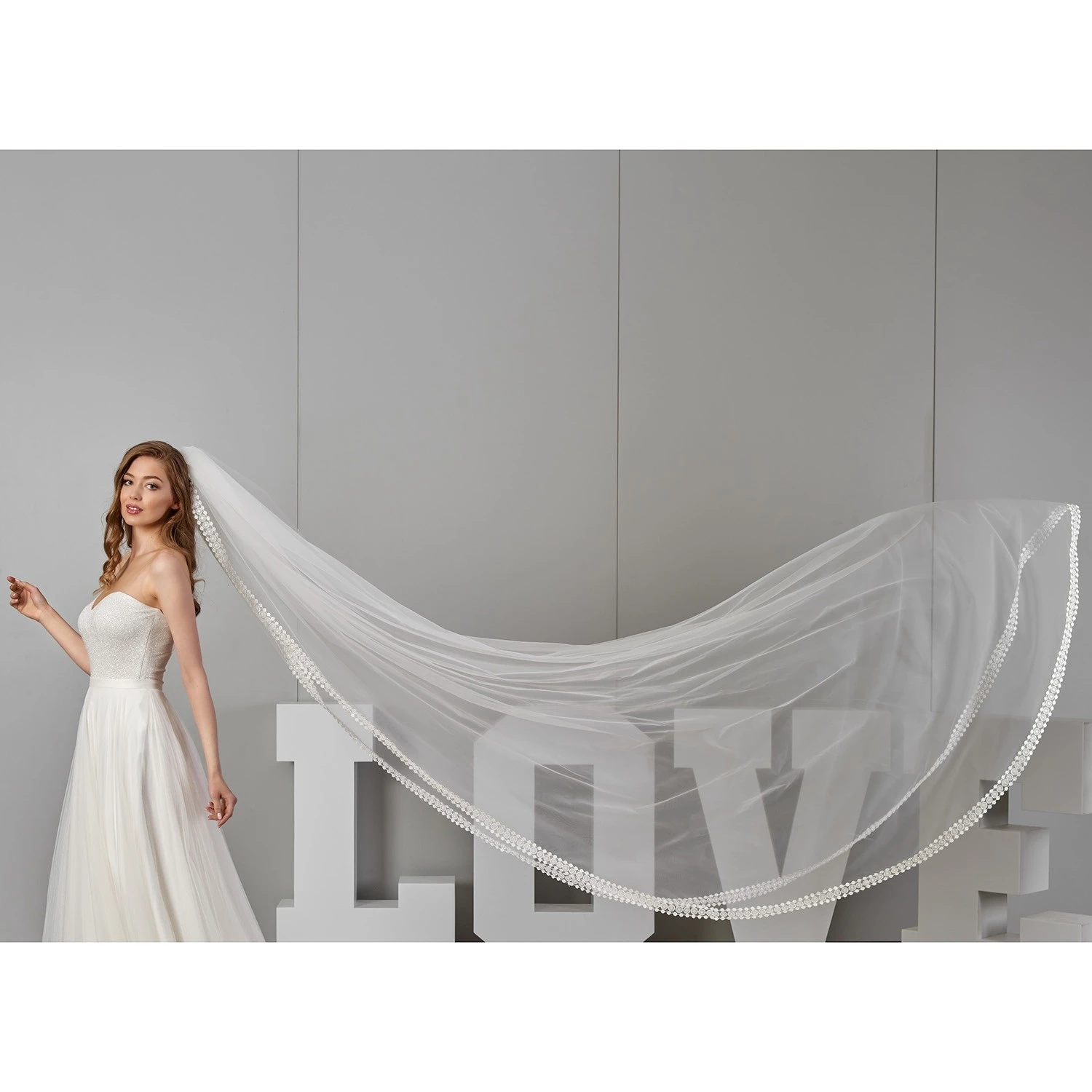 Voile de mariage très long.