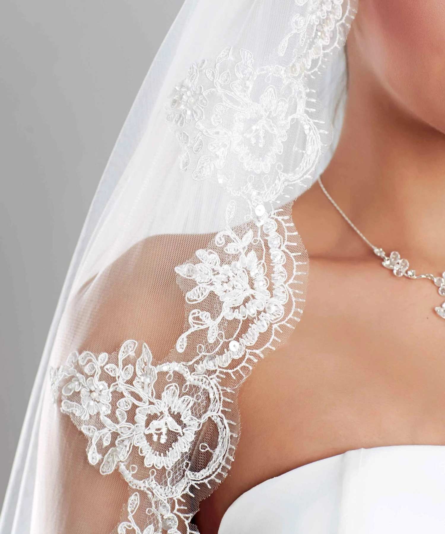 Voile De Mariée Très Long En Dentelle Et Perles De Verre Dafne