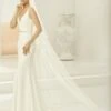 Voile de mariée romantique en tulle ivoire, décoré d’une magnifique dentelle guipure.