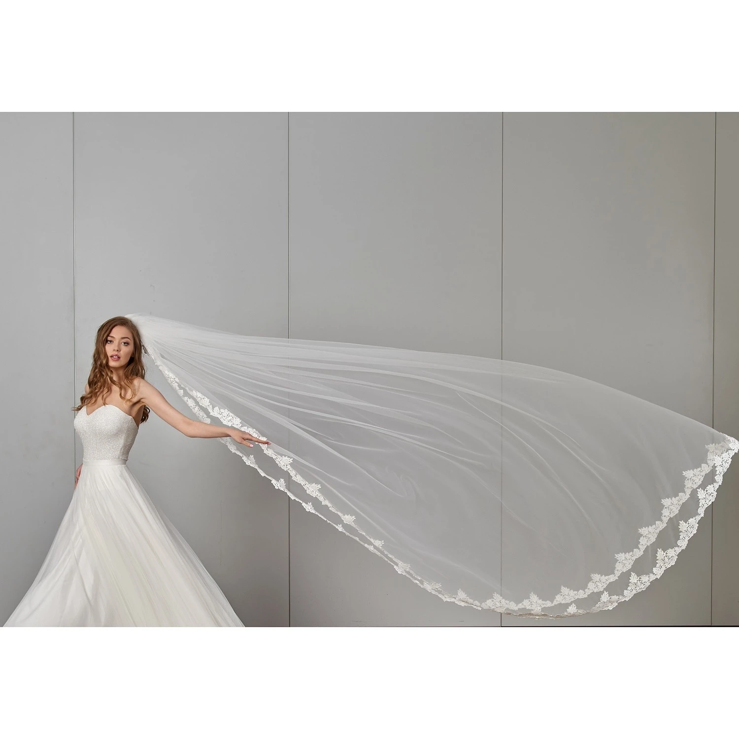 Voile Mariage Ivoire Très Long Bordure Dentelle Sonja